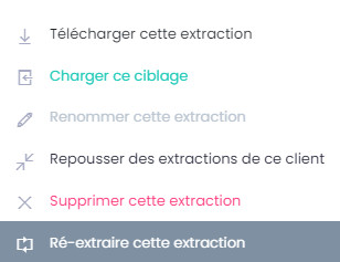 Ré-extraire cette extraction : permet de modifier l'extraction initiale, pour ajouter ou retirer un champ, modifier la ventilation des données, la priorisation …