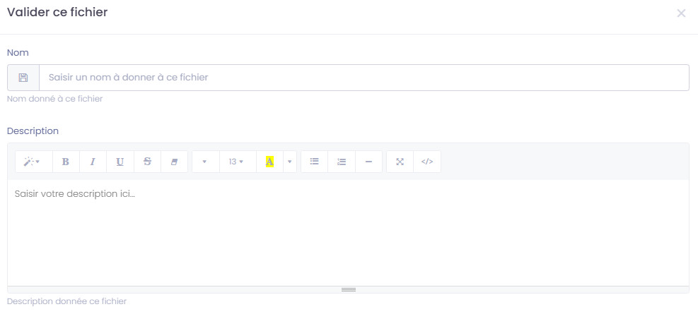 Vous devez définir ici le nom ou la référence de votre extraction (obligatoire) et y ajouter également une description détaillée (facultatif).