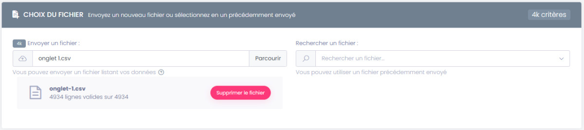 Lignes totales parcourues : correspond au nombre total de ligne contenues dans le fichier de départ à enrichir.